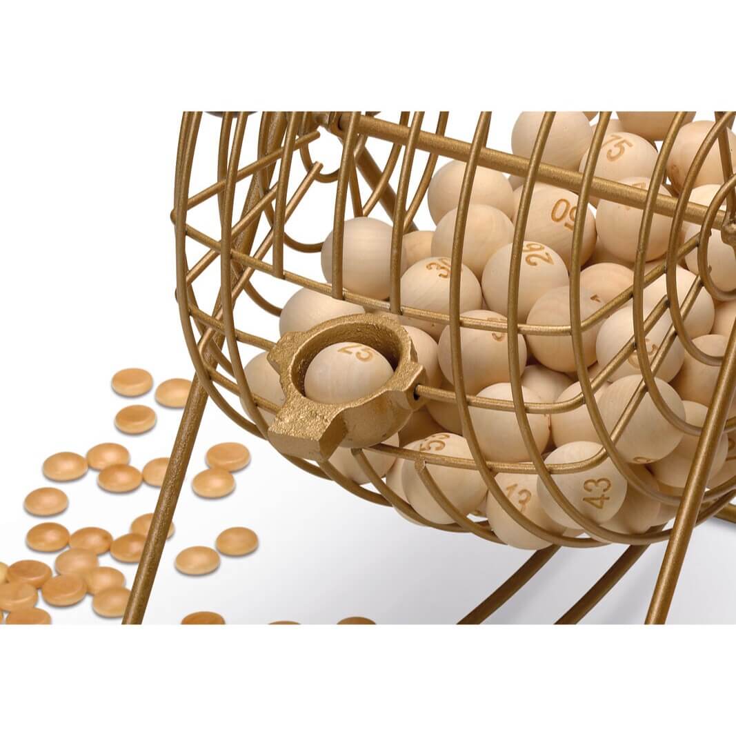 Jogo de bingo com tômbola de metal de 18 cm de diâmetro.