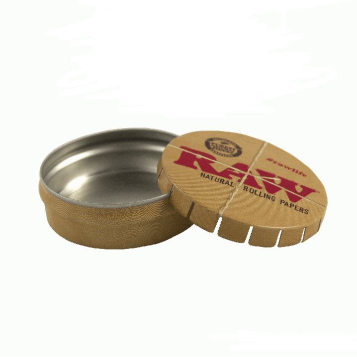 • Lata de cartão e metal com tampa 'RAW NATURAL ROLLING PAPERS'
