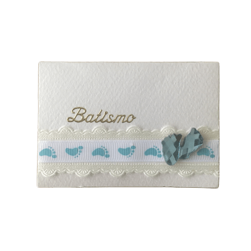 Cartão Artesanal - Batizado Menino 1,50 € Desconto de %. Partilhar O produto encontra-se sem stock. Postal pequeno feito à mão.Sem texto no interior. Com envelope. Medidas: 9x6,3 cm. O envio é, por defeito, aleatório, mas pode sempre falar connosco para tentar receber o padrão preferido. Tags PostalPostal artesanalBatizado Características