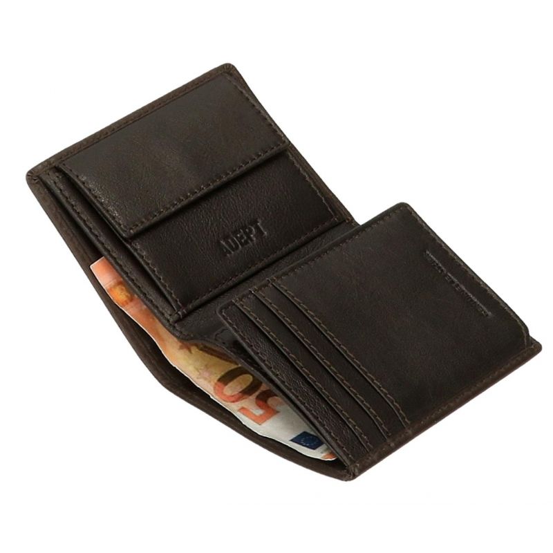 Carteira Adept Alan Castanha 35,00 € Desconto de %. Partilhar O produto encontra-se sem stock. Carteira Adept Alan Castanha. Possui seis ranhuras para guardar cartões, um compartimento para cartão de identificação e dois espaços independentes para notas e recibos. Incorpora porta-moedas com fecho de clique. Protecção RFID. Medidas: 8x10x1 cm. Material: pele. Marca Adept Tags CarteiraPorta-moedas
