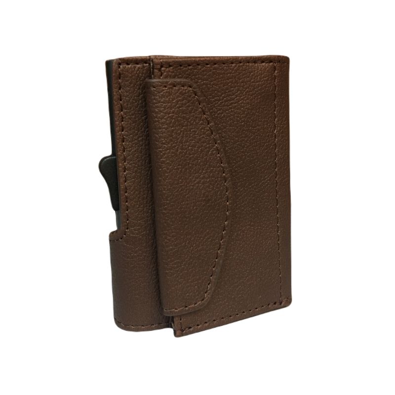 Carteira porta-cartões com porta-moedas com proteção RFID, impeditiva de clonagem, com espaço para até 12 cartões.
