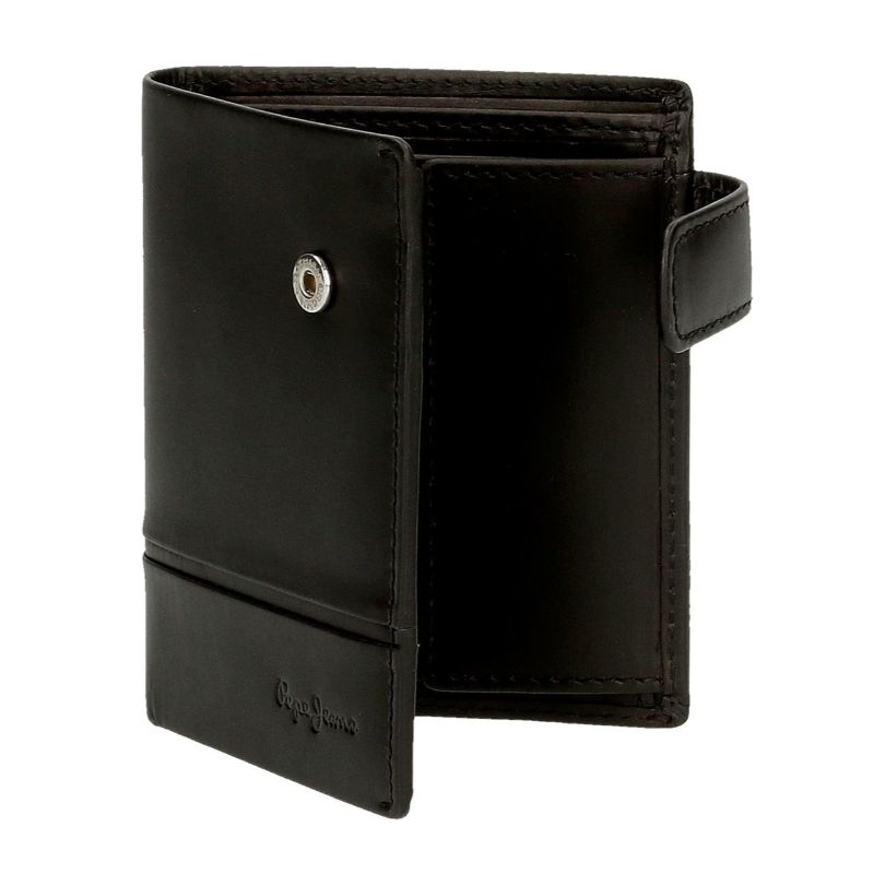 Carteira Pepe Jeans Dandy Preta 39,90 € Desconto de %. Partilhar O produto encontra-se sem stock. Carteira em pele Pepe Jeans Dandy com fecho de clique. Possui seis ranhuras para guardar cartões, um compartimento para cartão de identificação e dois espaços independentes para notas e recibos. Incorpora porta-moedas com fecho de clique. Protecção RFID. Medidas: 8,5x10,5x2 cm. Material: pele. Marca Pepe Jeans Tags CarteiraPorta-moedas Características