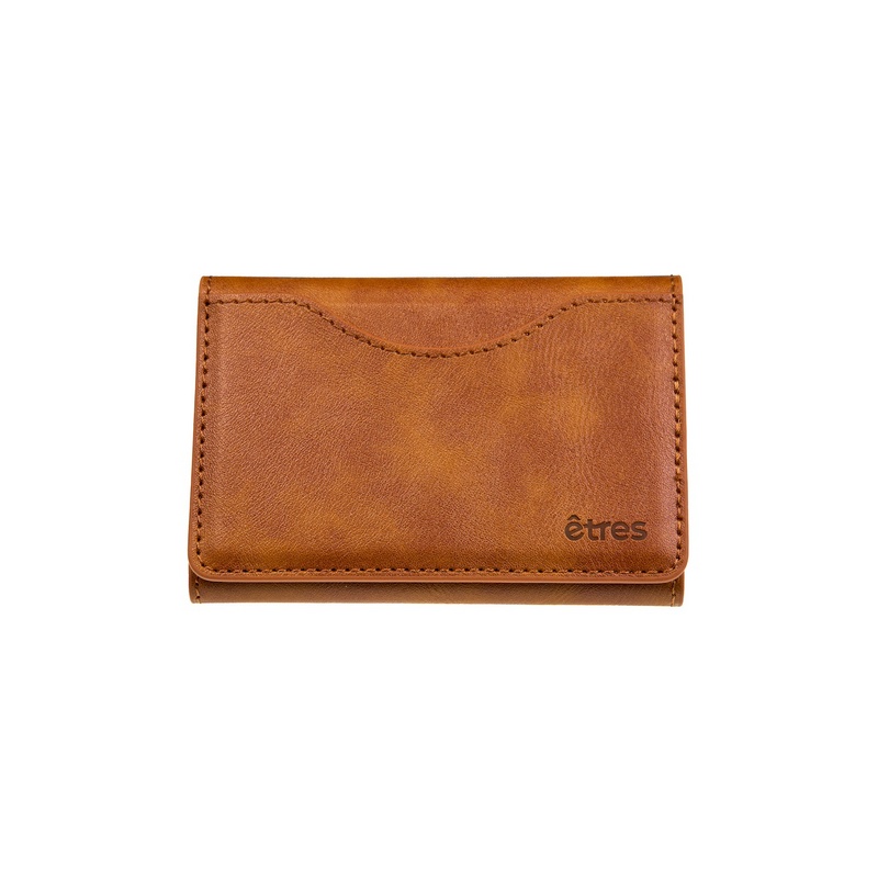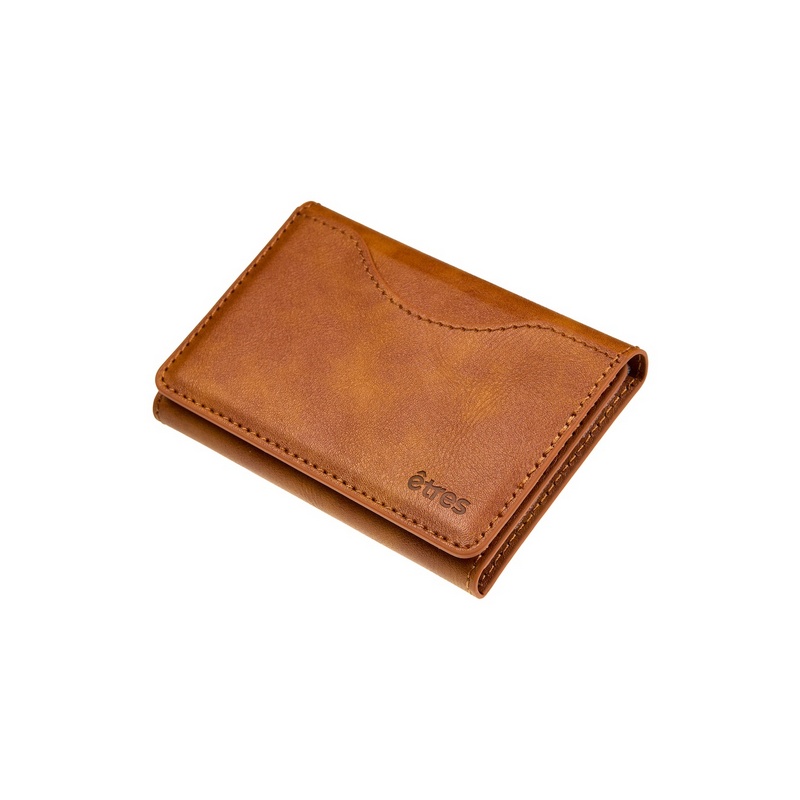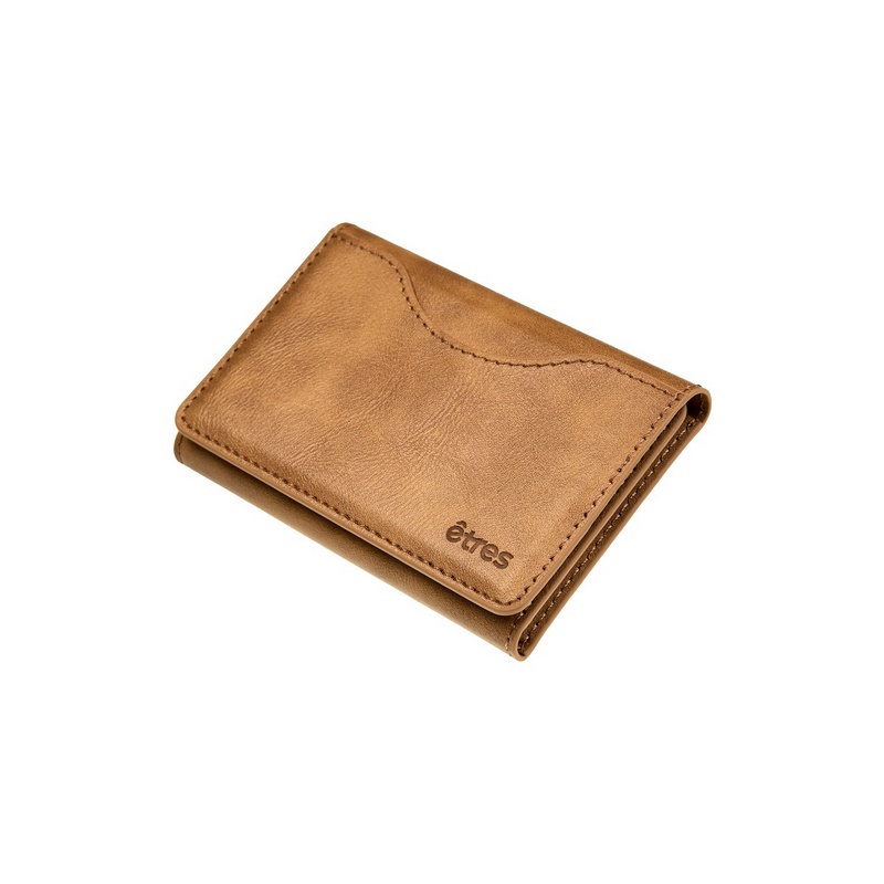 • Carteira dobrável de pele castanha clara com logótipo ètres