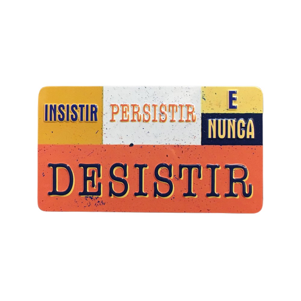 Íman Retro MMP 027 - Insistir, persistir e nunca desistir 4,95 € Desconto de %. Partilhar O produto encontra-se sem stock. Íman com design de inspiração retro. Mensagem inscrita"Insistir, persistir e nunca desistir"Medidas: 10x5,7 cm. Tags PresentesÍman Características