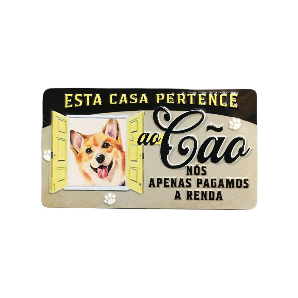Íman Retro MMP 052 - Esta casa pertence ao cão, nós apenas pagamos a renda 4,95 € Desconto de %. Partilhar O produto encontra-se sem stock. Íman com design de inspiração retro. Mensagem inscrita"Esta casa pertence ao cão, nós apenas pagamos a renda"Medidas: 10x5,7 cm. Tags PresentesÍmanCão