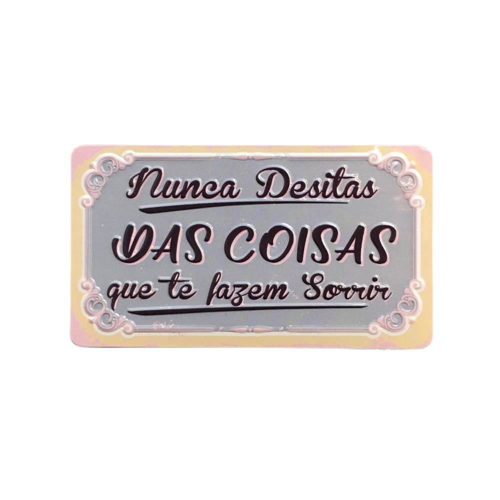 Íman Retro MMP 057 - Nunca desistas das coisas que te fazem sorrir 4,95 € Desconto de %. Partilhar O produto encontra-se sem stock. Íman com design de inspiração retro. Mensagem inscrita"Nunca desistas das coisas que te fazem sorrir"Medidas: 10x5,7 cm. Tags PresentesÍman Características