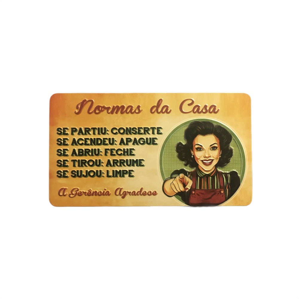 Íman Retro MMP 105 - Normas da casa 4,95 € Desconto de %. Partilhar Comprar Contactar SKU: ZF120205 Íman com design de inspiração retro. Mensagem inscrita"Normas da casa:-Se partiu: conserte-Se acendeu: apague-Se abriu: feche-Se tirou: arrume-Se sujou: limpeA gerência agradece" Medidas: 10x5,7 cm. Tags PresentesÍman