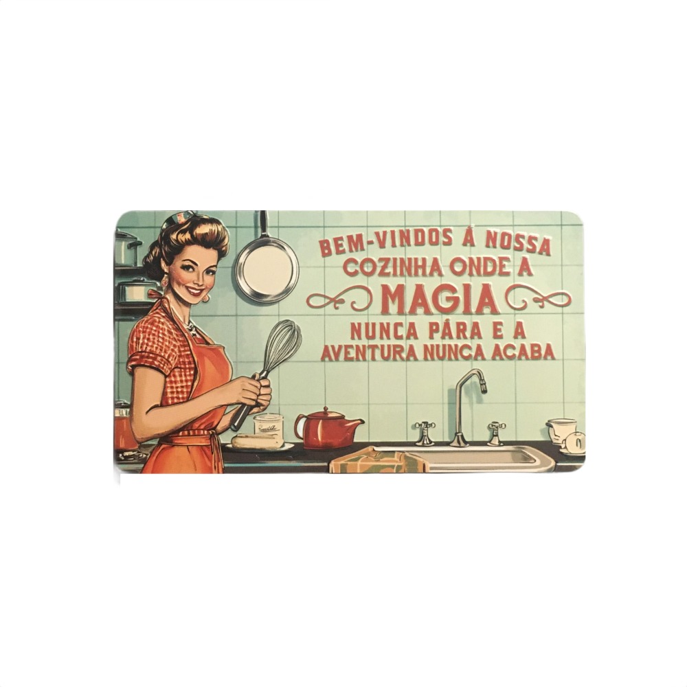 Íman Retro MMP 151 - Bem-vindos à nossa cozinha 4,95 € Desconto de %. Partilhar Comprar Contactar SKU: ZF120251 Íman com design de inspiração retro. Mensagem inscrita"Bem-vindos à nossa cozinha, onde a magia nunca pára e a aventura nunca acaba". Medidas: 10x5,7 cm. Tags PresentesÍman Características