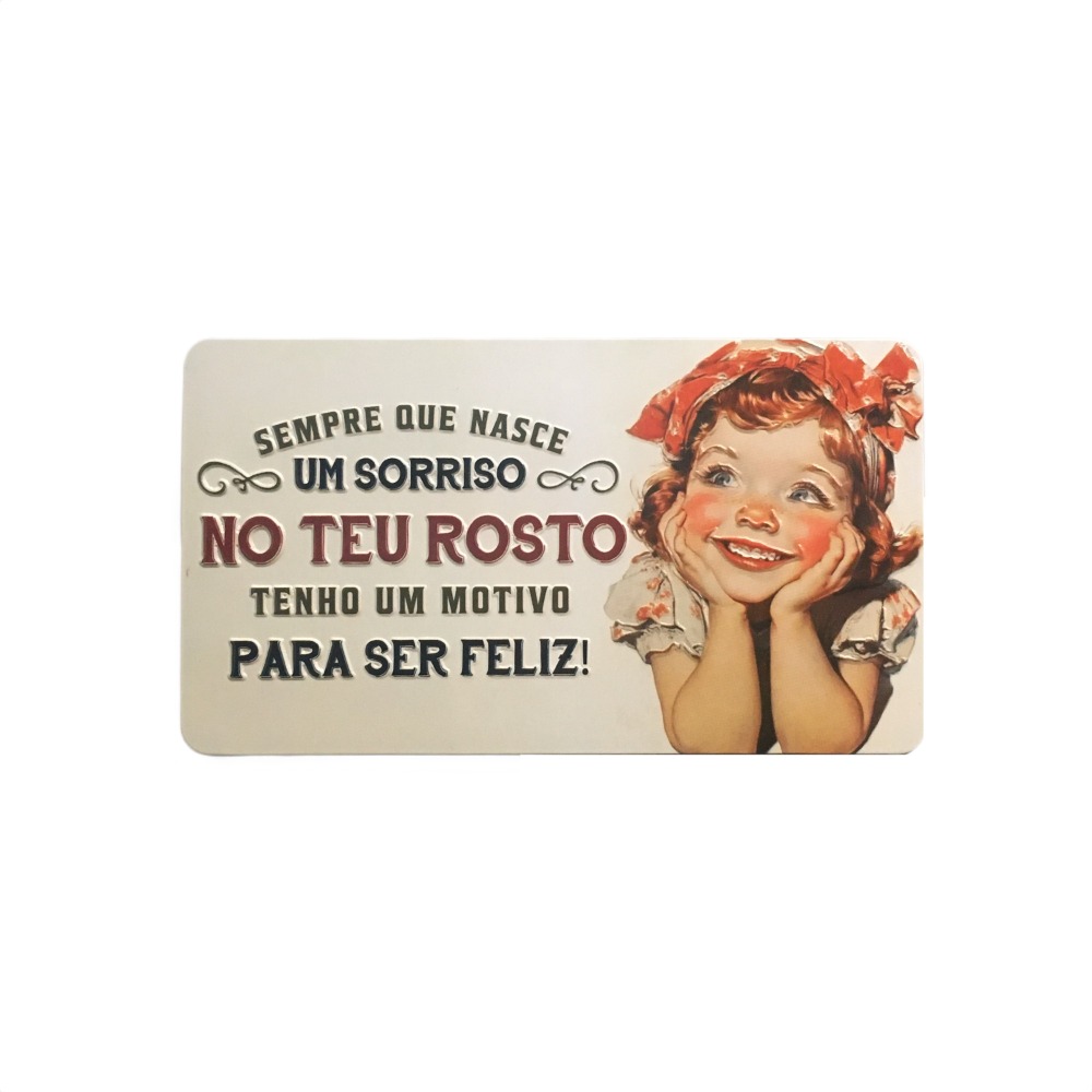 Íman Retro MMP 173 - Sempre que nasce um sorriso no teu rosto tenho um motivo para ser feliz! 4,95 € Desconto de %. Partilhar Comprar Contactar SKU: ZF120273 Íman com design de inspiração retro. Mensagem inscrita"Sempre que nasce um sorriso no teu rosto tenho um motivo para ser feliz!" Medidas: 10x5,7 cm. Tags PresentesÍman