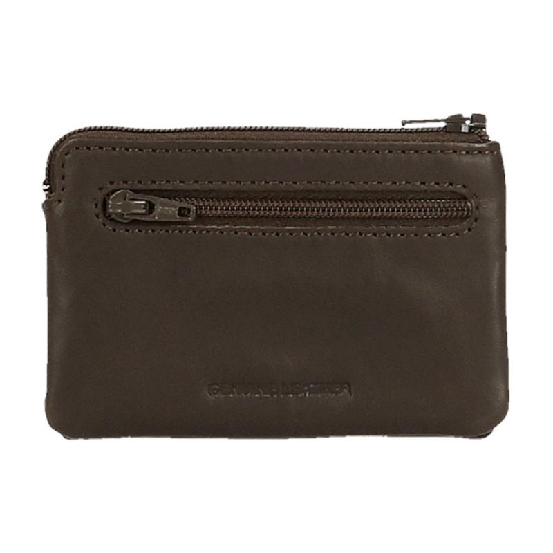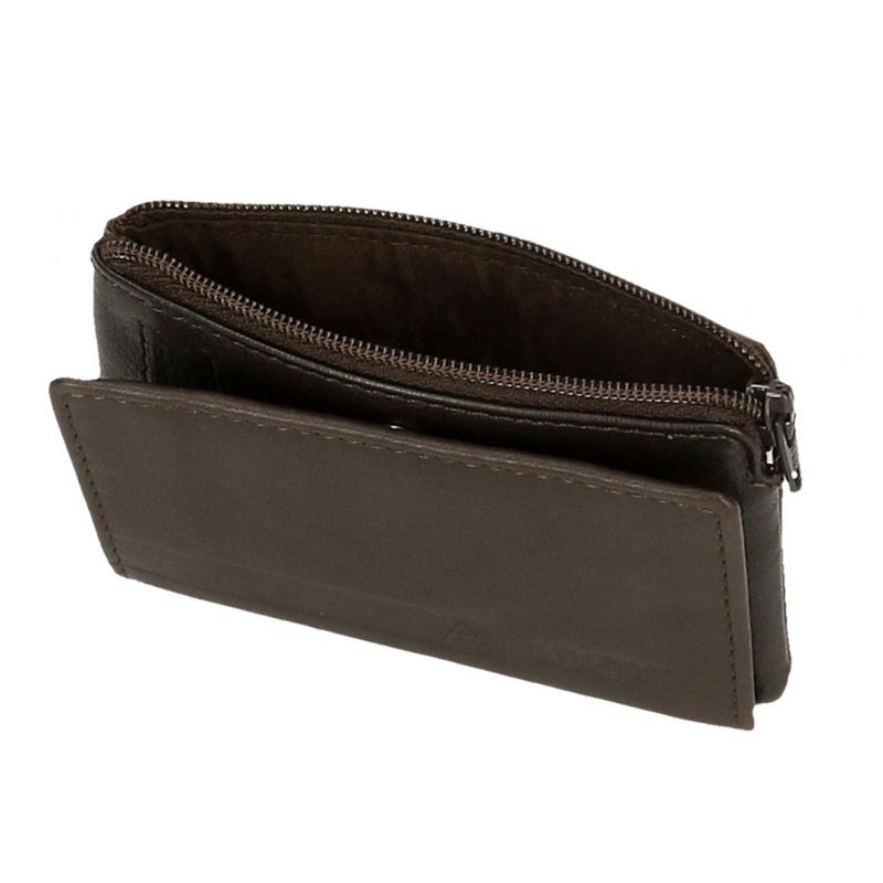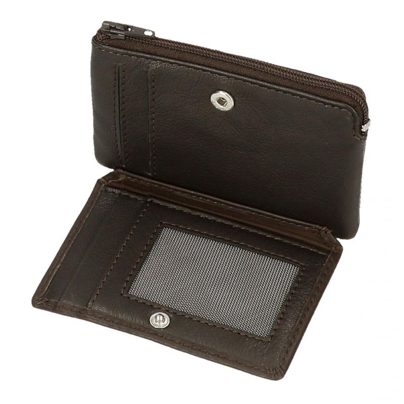 • Carteira em pele castanha com fecho e compartimentos para cartões