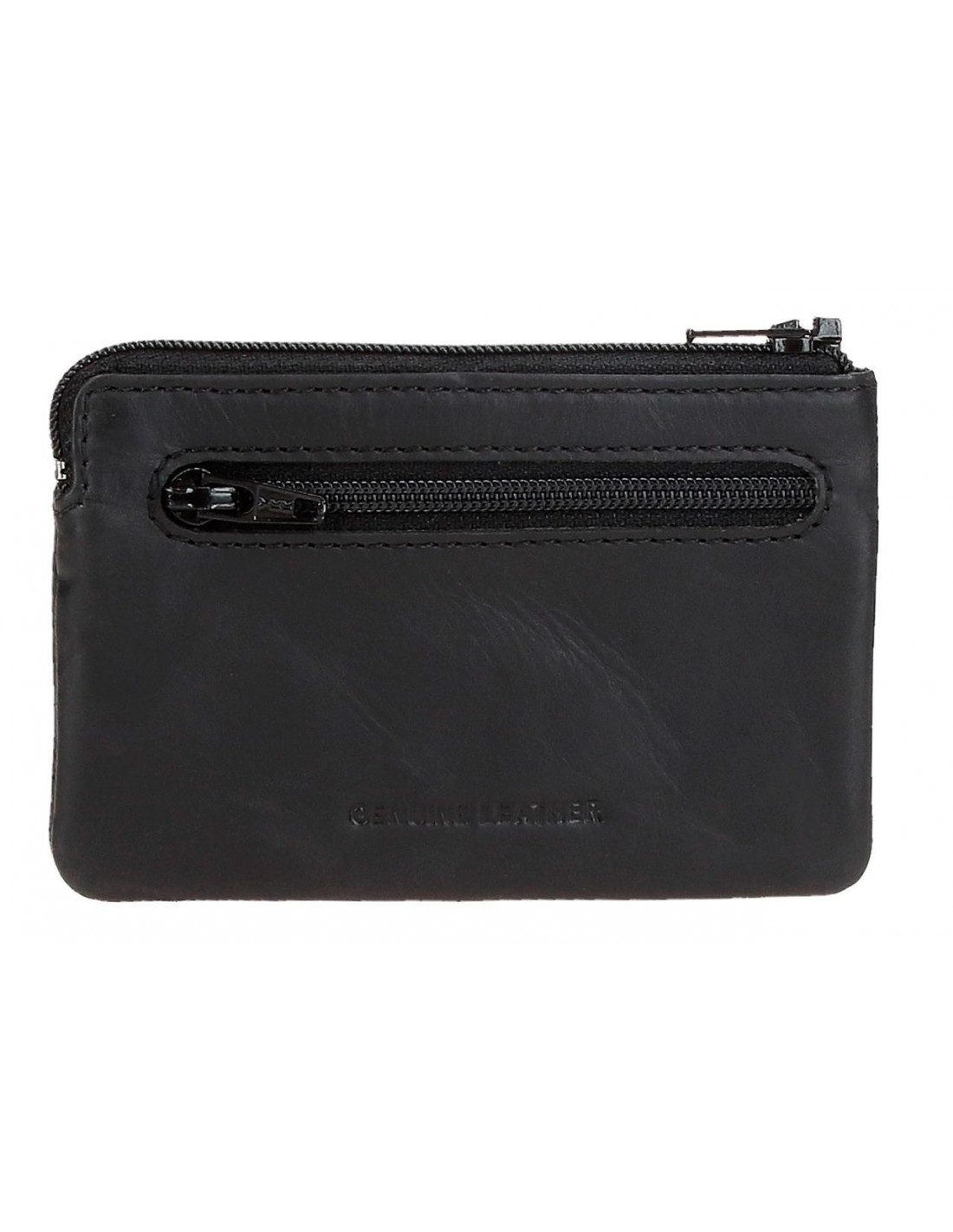 • Possui um compartimento com fecho-éclair para moedas e outro compartimento com fecho de clique com quatro ranhuras para cartões e uma para cartão de identificação.