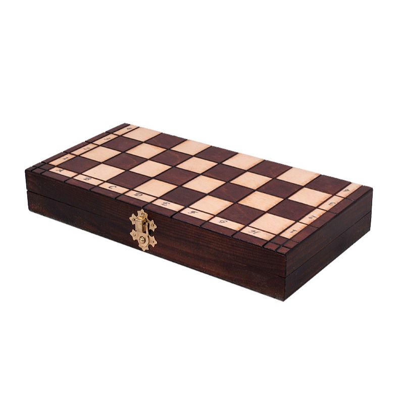 • Tabuleiro de xadrez de madeira fechado com fecho metálico